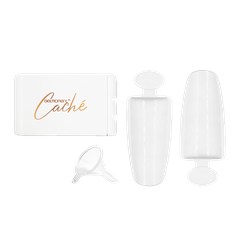 Gelmoment caché, a convenient recycling system that reduces product waste when creating beautiful nail art. Caché increases the ease of cleaning up with its two-tray design that collects and reuses excess powders and glitter effectively.